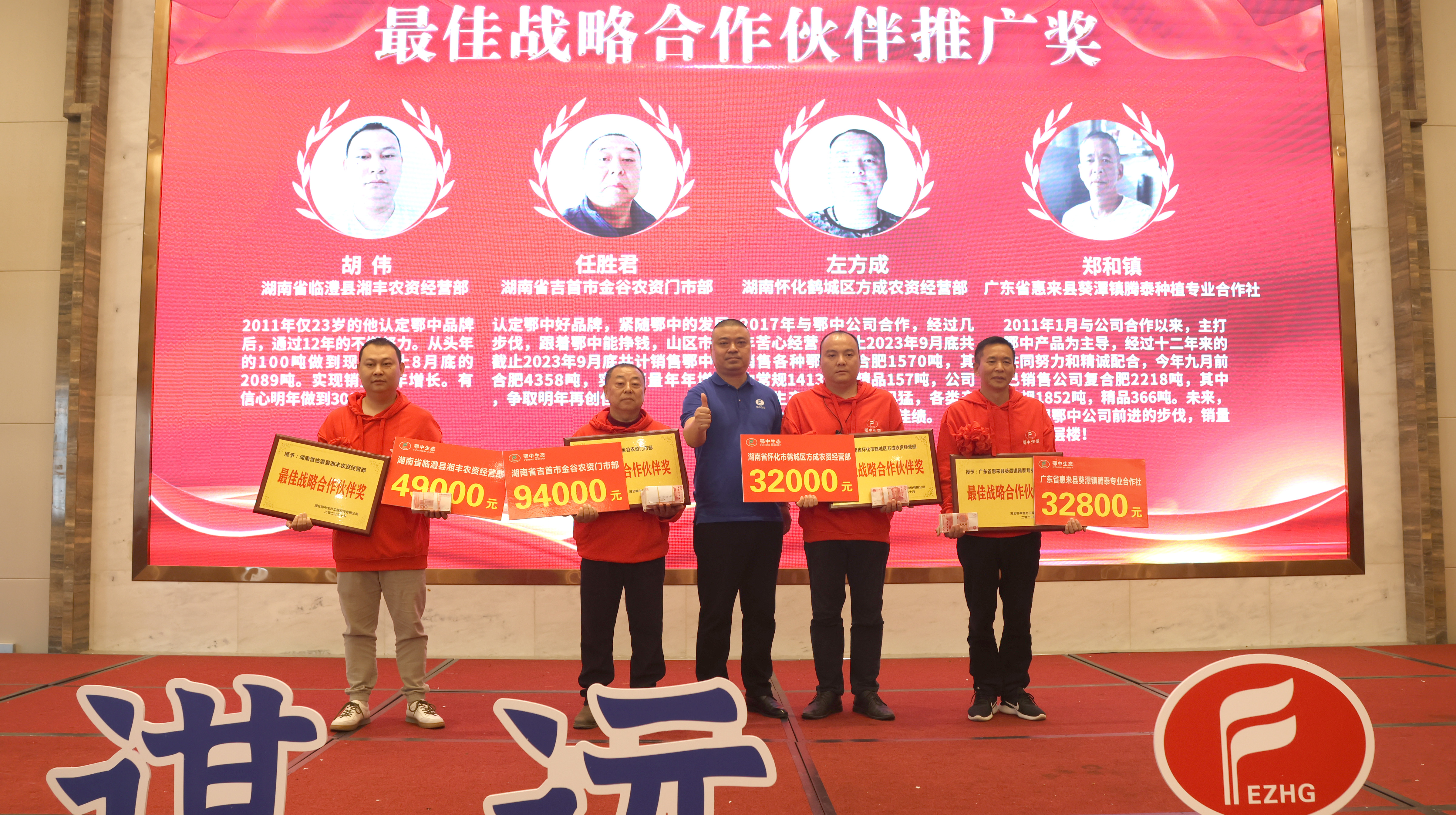 隨后,鄂中生態對2023年銷售業績突出的經銷商頒發了獎牌、獎金,各經銷商合作伙伴也針對各自所在區域的特殊性,以及自己在渠道拓展方面的成功經驗,進行了積極分享與討論。