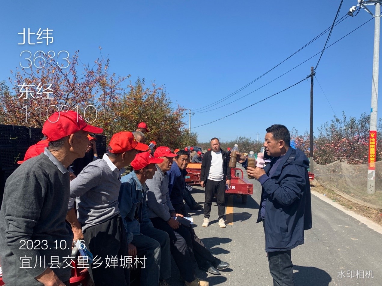 10月16日,宜川縣交里鎮(zhèn)嬋塬村,神捕觀摩會(huì)在這里舉行,紅彤彤的蘋果掛滿枝頭,讓人垂涎欲滴。前來(lái)觀摩的村民,看著樹上漂亮的蘋果不停地夸贊,“這個(gè)果子就是好啊,看來(lái)這肥料確實(shí)效果不錯(cuò)!”