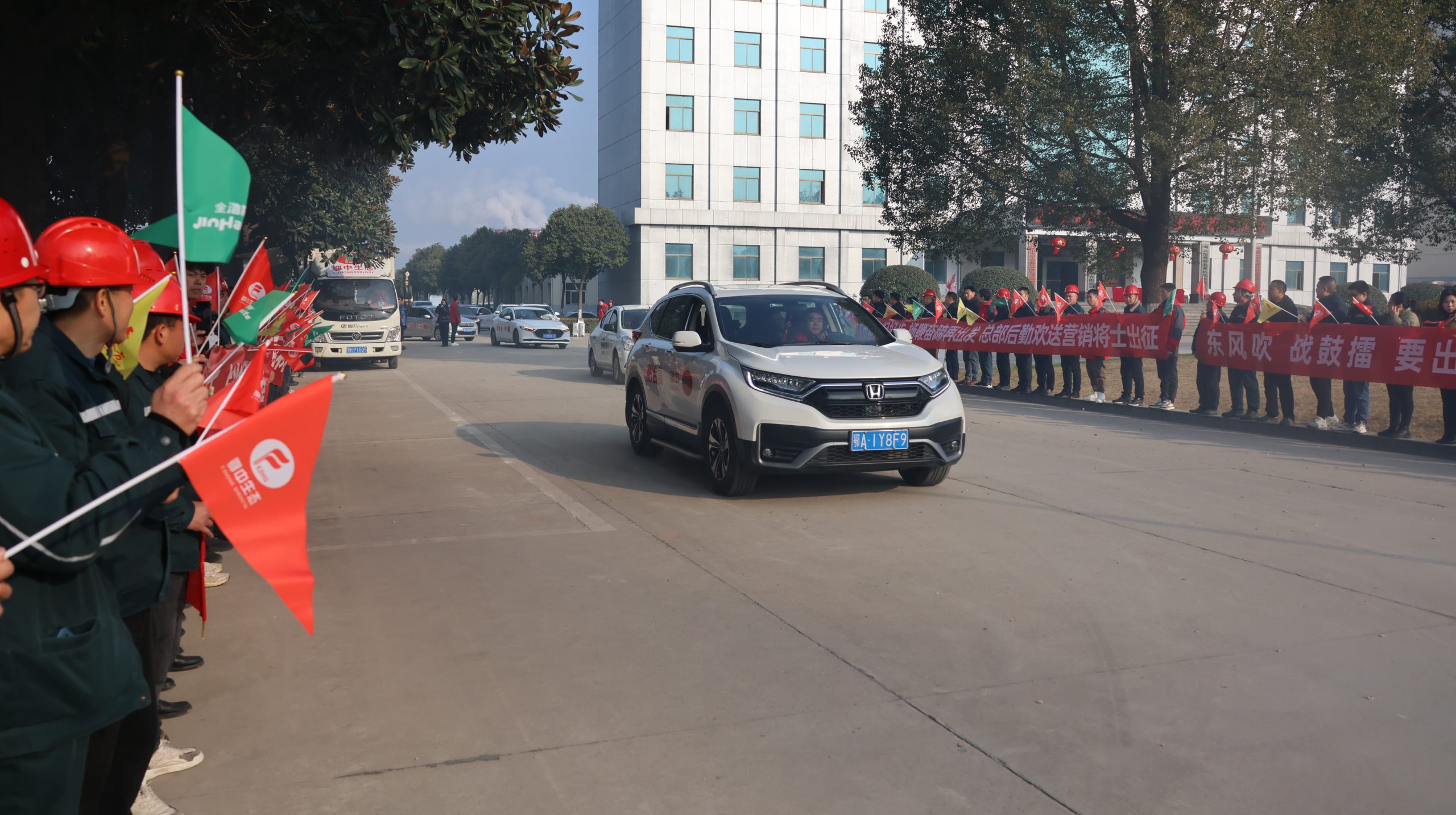 9點08分,隨著楊華登總經理的一聲令下——出征,禮炮聲聲響徹大地,600余名營銷將士驅車奔赴全國市場,各部門負責人、一線員工及行管后勤人員手拉橫幅,揮舞彩旗,為即將奔赴全國市場一線的營銷將士們助威壯行,現場的掌聲與喝彩聲經久不息。