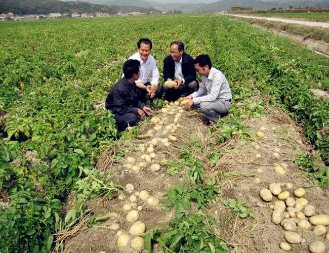 5月14日一大早,鄂中生態(tài)工程股份有限公司鄂北分公司片區(qū)經(jīng)理莊曉磊和服務(wù)隊(duì)就來到隨州廣水市平嶺村村前李宜美和李志學(xué)兩兄弟鄂中復(fù)合肥馬鈴薯示范田里,在5月即將收獲的季節(jié),一個個馬鈴薯個大均勻,賣相好,色澤黃亮,皮毛好,病蟲害少,不裂果,畝產(chǎn)可達(dá)到3500余公斤。在長嶺農(nóng)資經(jīng)理向和平的吆喝聲中,農(nóng)民們得知是鄂中生態(tài)工程企業(yè)現(xiàn)場觀摩指導(dǎo)馬鈴薯基地示范田配肥用肥,一下子80多種植大戶紛紛圍了上來,你一言我一語地詢問著馬鈴薯如何科學(xué)施肥。