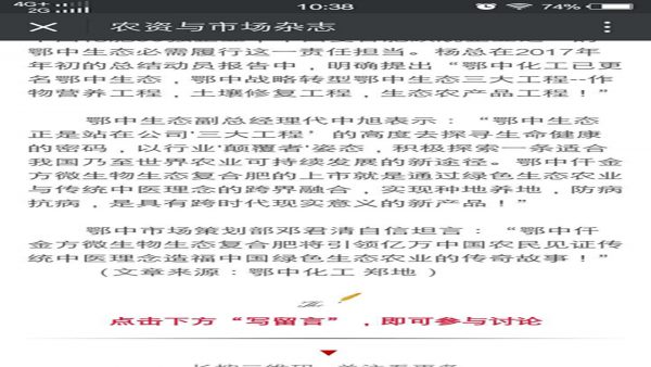 鄂中微生物生態(tài)復(fù)合肥是湖北鄂中生態(tài)工程股份有限公司董事長(zhǎng)楊才超先生“百年鄂中,千年大計(jì)”宏大愿景的首款新型生態(tài)肥料產(chǎn)品。楊才超多次指出:當(dāng)前行業(yè)發(fā)展已經(jīng)到了一個(gè)必須轉(zhuǎn)型的新階段。產(chǎn)能?chē)?yán)重過(guò)剩,市場(chǎng)競(jìng)爭(zhēng)激烈,國(guó)家相繼出臺(tái)了化肥農(nóng)藥“零增長(zhǎng)”行動(dòng)計(jì)劃,《土壤污染防治法》(土十條),農(nóng)業(yè)部有機(jī)肥替代化肥行動(dòng)方案等產(chǎn)業(yè)政策。