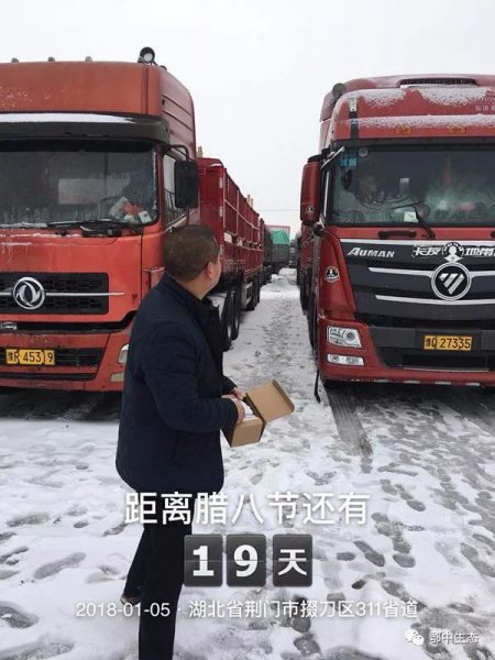 ??? ?寒潮來襲,引起大量車輛滯留,他們為客戶送上暖暖的熱茶,升起暖暖的爐火,為客戶問寒問暖,第一時間在寒冷的天氣里為客戶送來有溫度的物流體驗!
