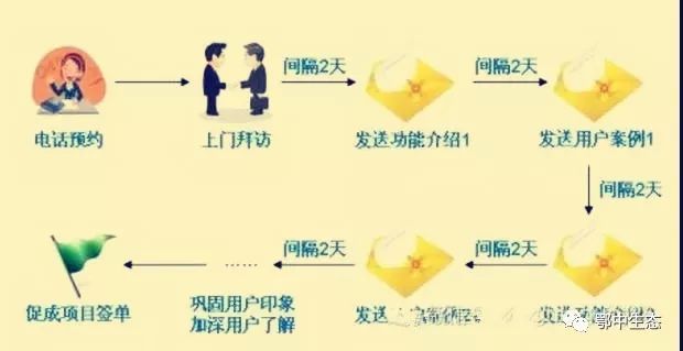 在農資銷售的當前,1%的銷量是在電話中完成的,2%的銷售是在第一次接洽后完成,3%的銷售是在第一次跟蹤后完成,5%的銷售是在第二次跟蹤后完成,10%的銷售是在第三次跟蹤后完成, 80%的銷售是在第4至11次跟蹤后完成!