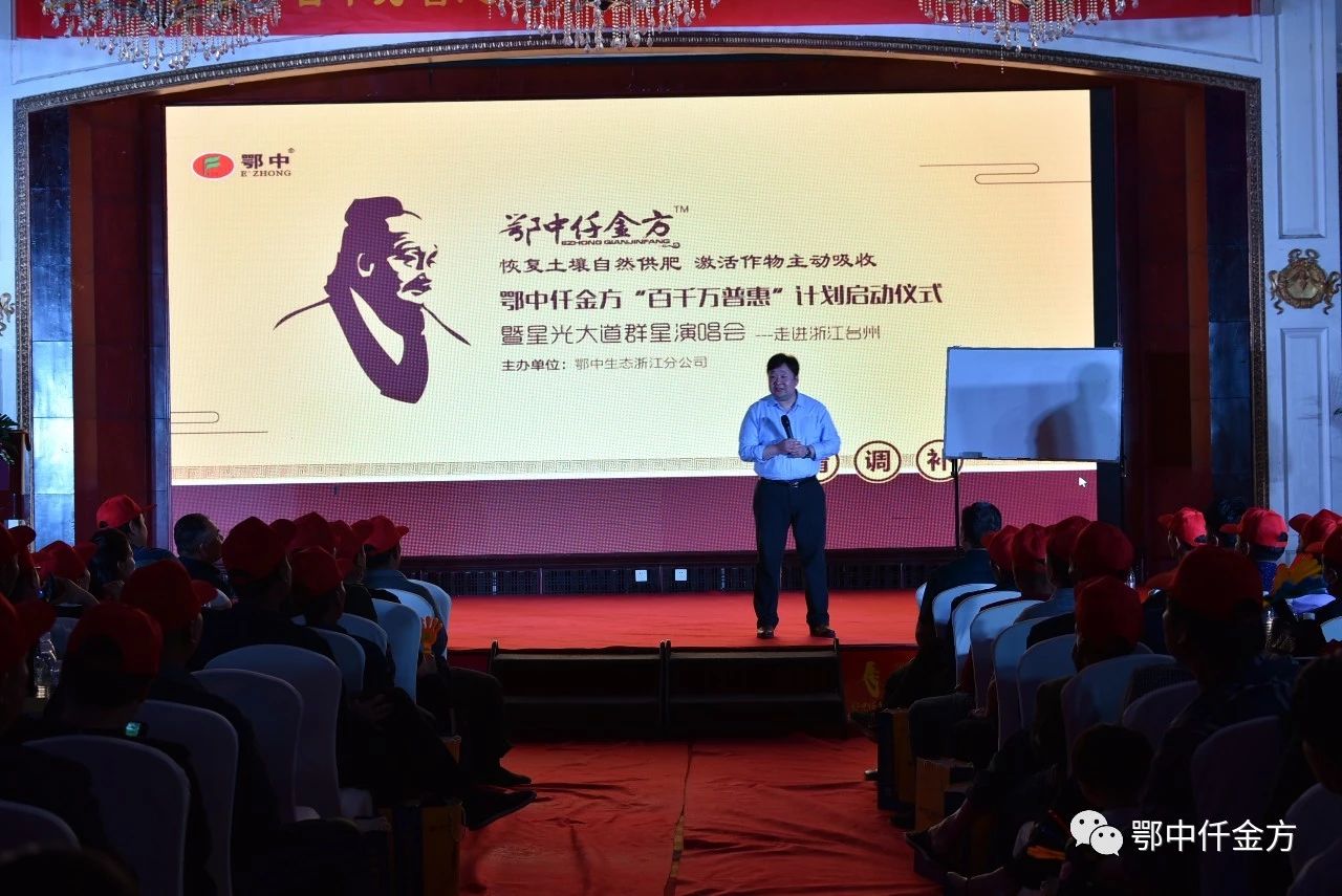 4月1日,鄂中仟金方“為中國億萬耕地療傷”行動,走進臺州-暨東南大區“百千萬普惠計劃”啟動儀式在浙江臺州開元大酒店,以購鄂中仟金方-看星光大道群星演唱會的公益演唱和推介的形式隆重舉辦并圓滿落幕。