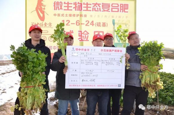 芹菜:清熱利濕,平肝健胃,可用于調(diào)味,亦用于醫(yī)藥,通常作為蔬菜食用。鄂中仟金方微生物生態(tài)復(fù)合肥減肥增效奇跡更重要的是經(jīng)得起逆勢雪災(zāi)和實(shí)踐的雙重考驗(yàn),在新野縣30萬畝大棚蔬菜大多遭遇凍害,鄂中仟金方西芹示范田卻在雪災(zāi)中增添了一幕堅(jiān)挺健壯的新綠,表現(xiàn)出植株更健壯,抗逆性增強(qiáng),有效緩解了寒冷天氣帶來的傷害。新型職業(yè)種植大戶深深地被鄂中仟金方的減肥增產(chǎn)效果所折服!豫南分公司經(jīng)理鄒應(yīng)成表示:鄂中仟金方在2017年創(chuàng)造了一個(gè)又一個(gè)作物增產(chǎn)奇跡,刷新了一次又一次作物減肥增效高產(chǎn)紀(jì)錄,新野芹菜觀摩會呈現(xiàn)出來的不過是冰山一角!我們相信,一款產(chǎn)品好不好,時(shí)間是最公平的裁判,也只有真正利國惠民的產(chǎn)品,才能得到農(nóng)民朋友的信任和支持,企業(yè)才能走的更遠(yuǎn)!今日您予我一份信任,他日我還您一個(gè)豐收!