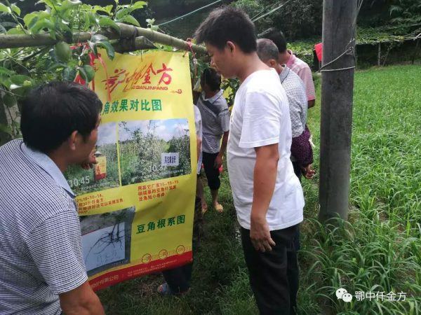 黨海榮現(xiàn)場傳播仟金方肥效:去年我的百香果每畝產(chǎn)量平均在5000斤左右,今年施用鄂中仟金方微生物生態(tài)復合肥,預計每畝增產(chǎn)1200斤左右,多增收3500元左右,穩(wěn)獲高產(chǎn)。黨海榮還介紹了示范田和對照田施肥情況:在1畝示范田7月26日施鄂中仟金方硫酸鉀型42%(12-6-24),0.5斤/株,環(huán)狀溝施,一年生樹,施肥后15天再施第二次。在1畝對照田里,土壤和樹勢基本一樣,7月26號開始施用其它品牌硫基45%(15-15-15),0.5斤/株,環(huán)狀溝施,一年生樹,施肥后15天再施第二次,連續(xù)施用4次后對比,鄂中仟金方效果明顯。