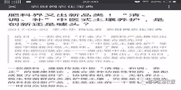 一款肥料,循傳統(tǒng)中醫(yī)“清毒、和調、養(yǎng)正”的健康理論,融合多種功能性物質,復配成復方內驅因子,協(xié)調有機養(yǎng)分、無機養(yǎng)分、微生物菌群的關系護理土壤,究竟是行業(yè)領先的科技創(chuàng)新產品,還是企業(yè)的一個營銷噱頭?一時間眾說紛紜。