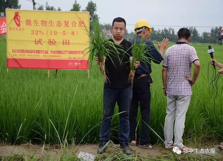鄂中生態(tài)新產(chǎn)品研發(fā)部部長艾新帥、中南大區(qū)總經(jīng)理杜水清、荊門分公司經(jīng)理田興等在接受專家和媒體記者采訪中表示:“鄂中仟金方有明顯減肥增效提質(zhì)的作用,符合當(dāng)前國家農(nóng)業(yè)產(chǎn)業(yè)政策,鄂中仟金方有明顯改良土壤和刺激根系生長的作用,說明仟金方微生物生態(tài)復(fù)合肥種地養(yǎng)地、防病抗病效果明顯。”示范田種植戶羅光美說:“根據(jù)長勢可估計每畝能增產(chǎn)150-300斤稻谷。”