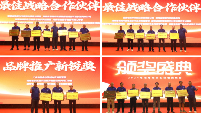 大會(huì)頒發(fā)了“最佳戰(zhàn)略合作伙伴”和“品牌推廣新銳獎(jiǎng)”,來自湘粵閩的21位優(yōu)秀經(jīng)銷商榮獲最佳戰(zhàn)略合作伙伴稱號(hào)。優(yōu)秀經(jīng)銷商代表湖南省湘西州吉首市金谷農(nóng)資經(jīng)營部楊葉英、廣東省清遠(yuǎn)市飛鳴生態(tài)農(nóng)業(yè)發(fā)展有限公司何飛明分別上臺(tái)發(fā)言。