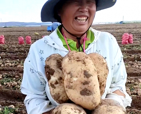 9月下旬,鐮刀灣區的馬鈴薯迎來豐收。大型全自動馬鈴薯收獲機在地里來回穿梭,工人正將收獲的馬鈴薯裝袋,一車車薯形好