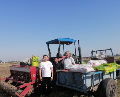 圖為鐘朝陽(右一)送肥下地